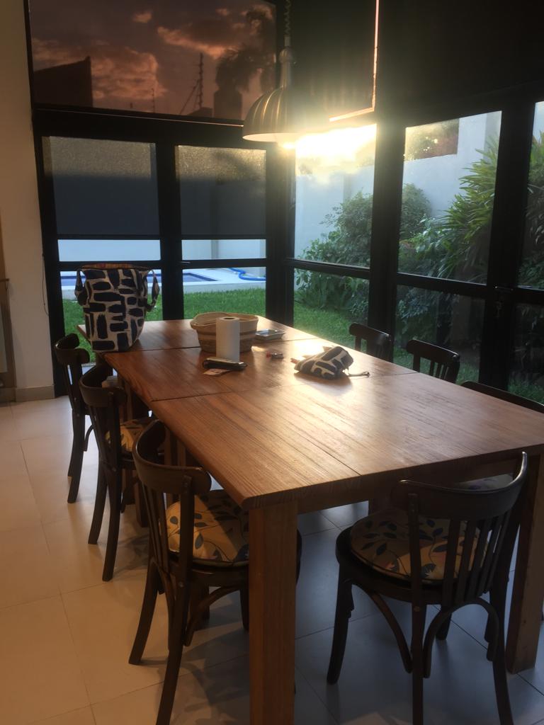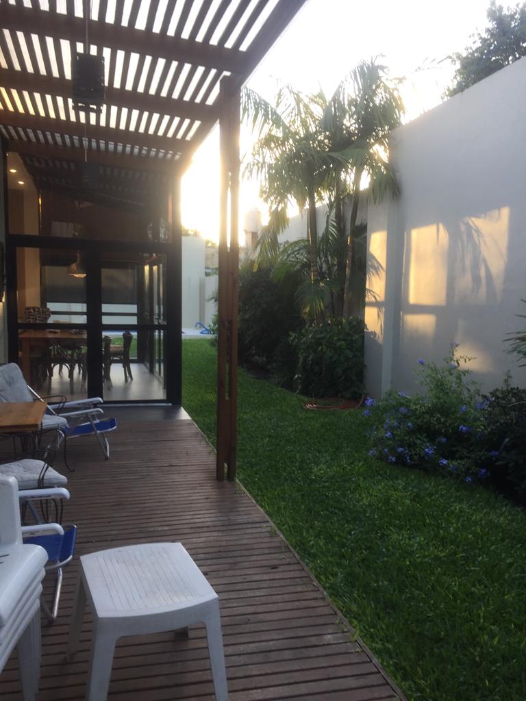 Excelente casa de 4 ambientes super luminosa, todo con vista al parque, totalmente reciclada a nuevo. En planta baja, con un estar, escritorio o dormitorio, cocina comedor muy amplia y luminosa, con una isla, mesada bajo mesada, alacena y mesada, ba帽o completo, lavadero, en planta alta un dormitorio con vestidor, con un ba帽o en suite con doble circulaci贸n y un dormitorio mas con placar. Hermoso parque, con riego por aspersorio, con pileta con bomba, y parrilla; todo las instalaciones, agua caliente sectorizada con 2 termotanque. DIGNA DE VER