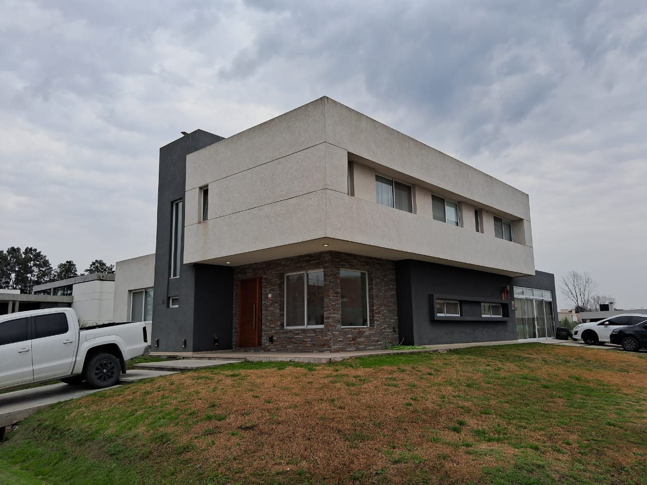 Excelente casa moderna en fincas de Alvarez. La misma cuenta con un hall de entrada, a la izquierda un living y un toilette, luego a la derecha una amplia cocina comedor integrada con amientes amplios abiertos, en la cocina tiene mesada, bajo mesada, e isla, todo muy luminoso, desde el comedor se accede al quincho que cuenta con una hermosa parrilla con una barra y también hay un sector donde hay otro living ideal para disfrutar con amigos y / o familia, pasando hermosos momentos de esparcimiento todo vidriado y muy luminoso, ya en en exterior cuenta con un terreno libre de unos 500 m2 todo parquizado. en la planta alta, tiene un dormitorio con vestidor y un baño en suitte son hidro masaje, dos dormitorios con placar y baño completo. TODO EN EXCELENTE ESTADO MUY MODERNO Y LUMINOSO